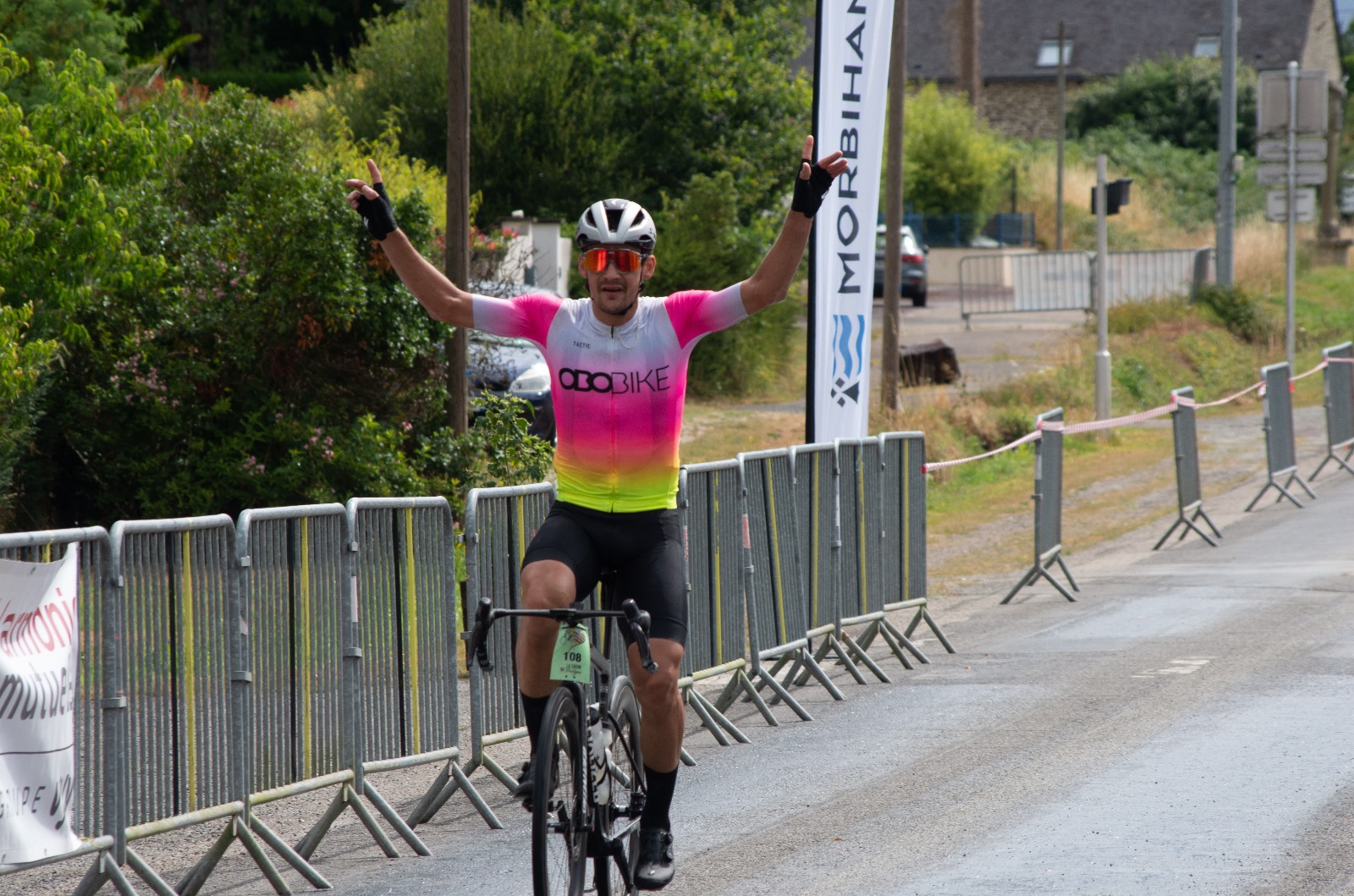 Il était 8h35, un autre peloton s’élançait à son tour sur la distance de 102 km en mode compétition comme auparavant sur le tracé du 135 km. Arnaud Le Meyec, accompagné depuis les tous premiers kilomètres de Mathias Lesgo ont avalé les 102 km en 2h32, soit à plus de 40 km/h de moyenne. La côte de Cadoudal à Plumelec qui accueillera le samedi 26 juillet l’arrivée de la 1ère étape du Tour de France Féminin était pourtant bien au menu de cette 19ème édition !